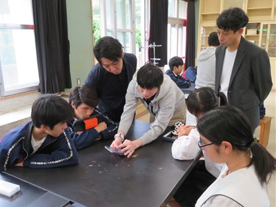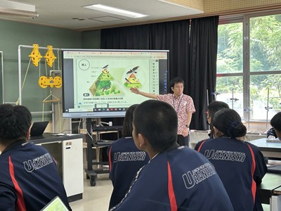 本日3年5組の理科の授業で、「生物多様性」や生態系について体験的に学ぶ出前授業が行われました。講師をしてくださったのはユニクロ サステナビリティ部の佐久間さん・岡田さん、株式会社シンク・ネイチャーの渡邉さん、五十里さんです。まずユニクロさんからは、私たちの生活が生きものとどのように密接につながっているか、SDG'sの視点からユニクロの企業としての様々な取り組みを説明していただきました。シンク・ネイチャーさんは、開発したアプリを使って、浦西中学校周辺で出会える生きものについて紹介してくれました。2時間目は実際にフィールドワークに出て様々な植物や昆虫など、アプリで確認しながら説明を受けていました。5組さんはこの貴重な出前授業を通して、身の回りの生きものと自分とのつながりを考えるきっかけになったと思います。自然豊かな浦西中学校だからこそ、フィールドワークと合わせて学びを深めることができました。講師の皆様、つないでくださった亮先生ありがとうございます。