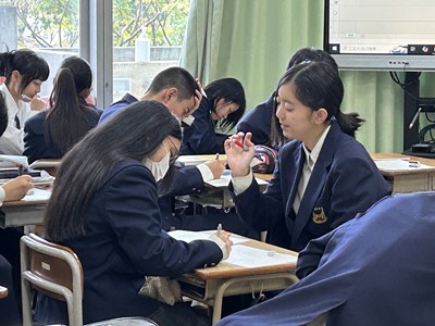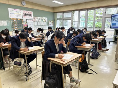 三者面談最終日。いよいよ明日は二学期終業式です。1学年では総合の時間に学年全体でキャリハピ祭に向けての取り組みを行っていました。3年生は国語の単元テストに真剣に取り組む姿、数学の難しい問題を友達同士教え合っている様子がありました。最近の3年生は勉強に対する一人一人の意識が高くなっています。さすが受験生です。