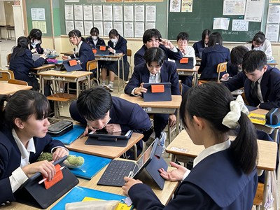 2年生のハピトラ成果報告会に向けて、自分たちの企画を提案する準備が進められています。先生方からよりよくなるアドバイスをもらいプレゼンの修正をかけていました。より相手に価値を伝えられるるようにどのグループも試行錯誤が続いています。