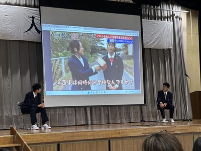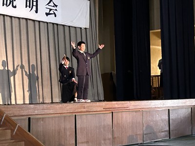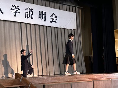 令和7年度本校に入学予定の6年生と保護者をお招きし、入学説明会を実施しました。新生徒会総務の皆さんのデビュー戦でもある今回の説明会、中学校生活に不安を抱える6年生が少しでも入学を楽しみにしてもらえたらなという思いで、生徒が活躍する場面を増やしています。1年生の代表がキャリハピの報告をしてくれました。6年生から見て一つ年上の先輩が頑張った探究活動の様子が伝わったと思います。生徒会の皆さんが学校生活の様子を動画仕立てで発表し、会場の空気が明るくなりました。制服ファッションショーでは素晴らしい着こなしをダンスを交えて紹介してくれました。6年生の皆さんが浦西中学校って楽しそうな学校だなと思ってくれたらうれしいです。4月の入学式で出会える日を心待ちにしていますね。