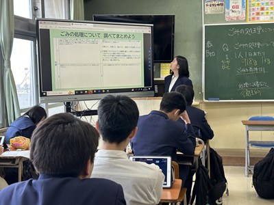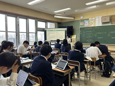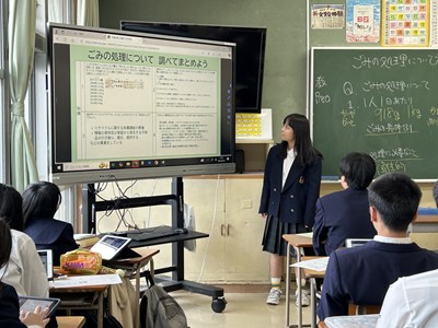保健の授業で3年2組さんは、私たち浦添市でごみの管理をどのようにしているのか、またごみの処理で一人一人が生活の中で心がけることは何かを考えていました。浦添市クリーンセンターやリサイクルプラザについてネットで調べたり、3Rや循環型社会という言葉についても学んでいます。人が生活するうえで1日に約1Kgのごみを出しているそうです。環境にやさしく、しかも衛生的にごみを管理することも私たちに必要な力ですね。