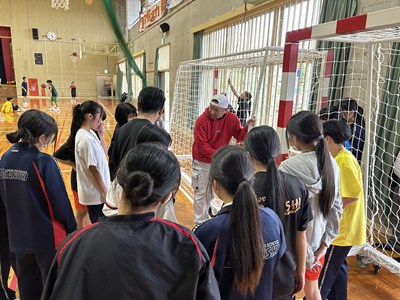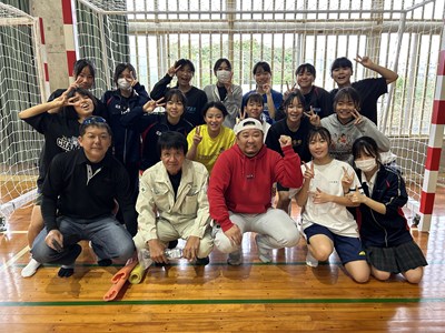 先日、株式会社琉創希の平田社長から、ハンドボールのゴール一式が寄贈されました。ハンド部の皆さんも大喜びです。ネットの取り付け作業を教えていただき、新品のゴールの前で記念撮影を行いました。大切に使わせていただきます。ありがとうございました!