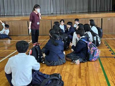 いよいよ明日から2日間、県立高校入試です。5校時、3年生は体育館に集合して試験会場下見に行く前の出発式を行いました。進路主任の育美先生から諸注意、学年主任の里子先生からは激励の言葉をもらい、3年生はそれぞれ受験する高校別に分かれて引率の先生と打ち合わせを行いました。表情を見ると緊張しているようには見えませんが、しっかりと会場を確認して、明日は全力が出せるよう、さあ、3年生の皆さん、気をつけていってらっしゃい!
