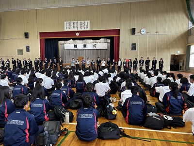 令和7年度、新任式・始業式で浦西中学校は元気にスタートしました。今年度は16名の新職員を迎え、協働体制で教育活動を展開していきます。始業式では2年代表の與那原さんが「1年生にかっこいいと思われるような先輩となって頑張りたい」、3年代表の宮城さんが「後輩たちの見本となって浦西中を盛り上げ、記憶に残る1年にしたい」と力強く代表あいさつをしてくれました。その後担任発表で大いに盛り上がり、初めての出会いを大切にそれぞれの学年で学級開きが行われました。ゲームをしたり、自己紹介で盛り上がったりと、楽しい笑い声が教室に戻ってきました。