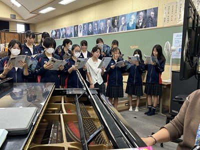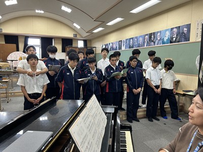 やる気はじゅうぶんで元気がいっぱいの3年1組の音楽の授業を参観しました。男声と女声パートにわかれて練習した後みんなで合わせました。「花」の歌詞の情景を思い浮かべてごらん?というアドバイスをもとに相手のパートに引きずられないように頑張って歌う1組さんでした。