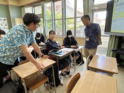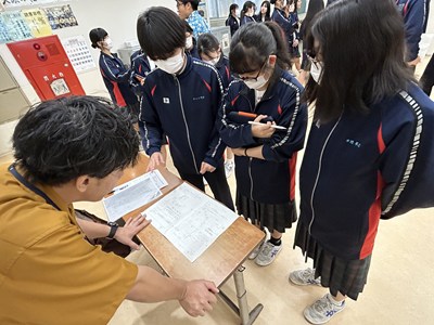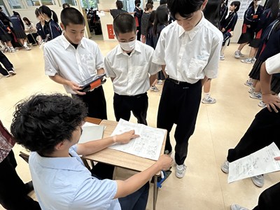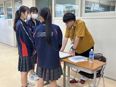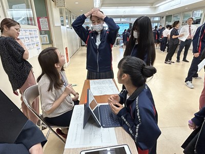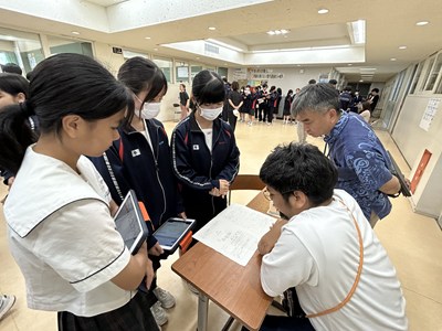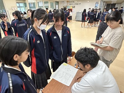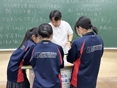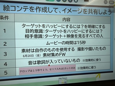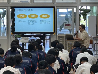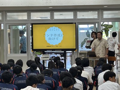 本日講師の先生方をお招きし、3年生の「ハッピームービープロジェクト」の絵コンテへのアドバイスをいただきました。先生方の総合の時間の研究授業の一環でもあります。先生方は生徒へのファシリテーションを学び合い、生徒は専門家からの辛口のアドバイスをもらえる取り組みを通して、各グループのターゲットをハッピーにする15秒のCMの絵コンテをこのあと再構成しブラッシュアップしていきます。動画制作会社CMCから濱元さん、仲村渠さん、又吉さん、沖縄テレビから普久原さん上原さんにいらしていただきました。お忙しい中ありがとうございました。皆様のおかげで充実した時間になりました。生徒の真剣な表情をぜひ見てください。