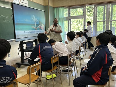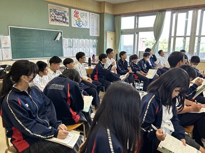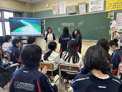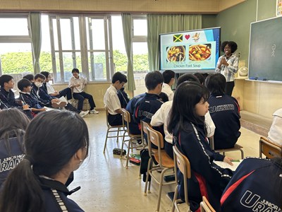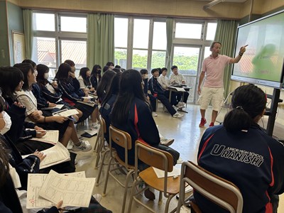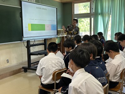浦添市内のAETの先生方をお招きし、異文化に触れる機会となるICEプログラムを1学年で実施しました。英語の授業でどんな質問をしたいかそれぞれ考えてきたので、質問タイムでは積極的に手をあげて発表してくれました。様々な国の紹介を夢中になって聞いている生徒の横顔を見ながら、とてもよい機会に恵まれたなと心から感謝しています。
