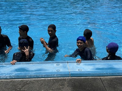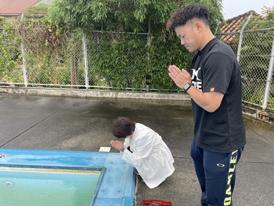 浦西中学校は今日からプール開きです。水泳の授業で事故が起こらないよう昨日の放課後安全祈願を行いました。今日は快晴、絶好のプール日和です。3年生の体育の授業では、男子も女子も歓声をあげながら1年ぶりの水泳の授業を楽しんでいました。