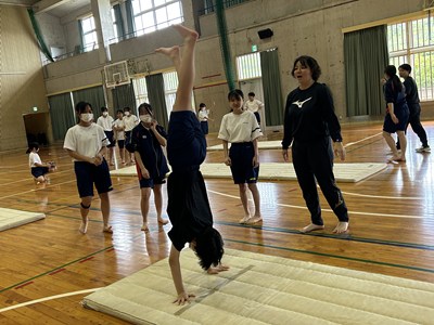 体育館で行われている3年生の体育の授業を参観しました。「ほん転技の発展技に挑戦しよう」というめあてのもと、友達同士アドバイスし合いながら取り組んでいました。タブレットで動画を撮り合って確認したり、起き上がるためにはどうしたらいいよと助言をしたり、どのグループも声をかけ合いながら学び合いの空気がとてもよかったです。本村先生にも褒められました。さすが3年生ですね。