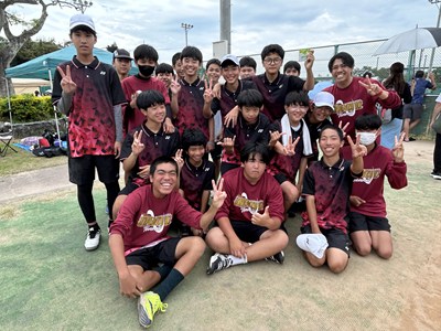 奥武山テニス競技場の男女テニスの皆さんです。2年生主体の女子テニス部は対戦相手の石田中3年生に果敢に挑みました。団体戦、個人戦共に敗れましたが次につながる試合でした。男子テニス部団体は一回戦昭和薬科中に勝利し、2回戦は浦添中相手に2-3で惜敗しました。個人戦では與那嶺・與那原ペア、桃原・中村ペアがともに県大会出場を決めました。残すは今週末に個人戦シングルスに挑みます。セルラー球場の野球部は古蔵中、寄宮中との合同チームです。2回戦まで進みましたが、惜しくも小禄中に敗れました。卓球部の様子は明日のホームページでお伝えします!