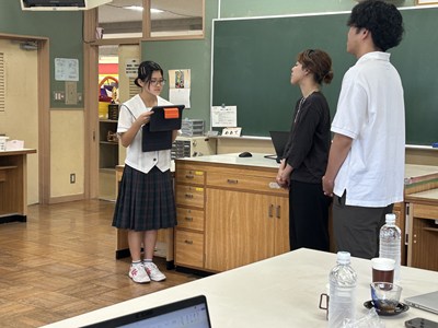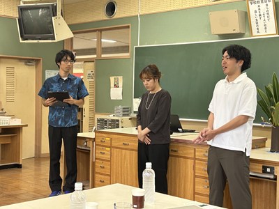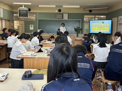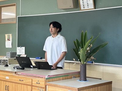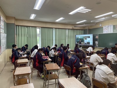 本日、平和学習の一環として、浦添市立中央公民館の平和キャラバンのプログラムの中から、ピースメッセンジャーによる講話を実施しました。メッセンジャーとして本校にいらしてくださったのは、高良紗加さんと船越遼太郎さんです。お二人は中学生のころ、浦添市平和交流団として長崎に派遣された経験をもとに、戦争を体験していない私たち一人一人が大切にしていきたい「あたりまえ」の幸せや、独りよがりではない幸せ、夢や希望を描ける幸せについて、お話してくださいました。オンラインで各教室と2年4組が参加した本会場をつないで、チャットを使っての質問コーナーもあり、内容もとても充実していました。来週月曜日は「慰霊の日」ですね。今日のお話を思い浮かべながら、一人一人が自分事として、未来のために平和を願う時間を過ごせたらいいですね。高良さん、船越さん、素敵なご講話ありがとうございました!