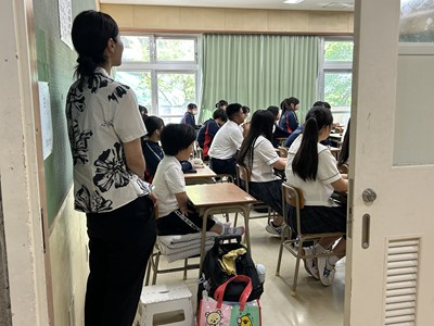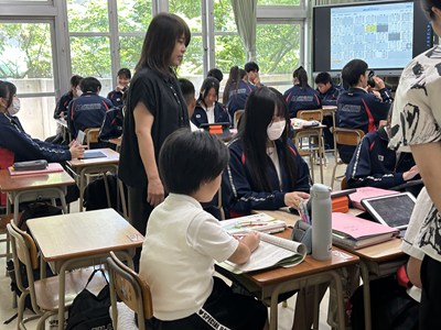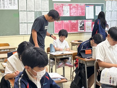 鏡が丘特別支援学校の生徒が本校の3年生の学級で共に授業を受ける交流学習が行われました。3年5組と4組で数学・保健体育・国語の授業に参加しました。いつも先生と一対一で授業を行っているとのこと。今日はたくさんの同級生に囲まれてグループ活動にも参加し、様々な意見にふれることができたようです。「今日の経験をこれからの学習に活かしていきたいです!」ととても素敵な笑顔で答えてくれました。次回のテスト交流やボッチャ交流で再び会えるのを楽しみにしていますね!