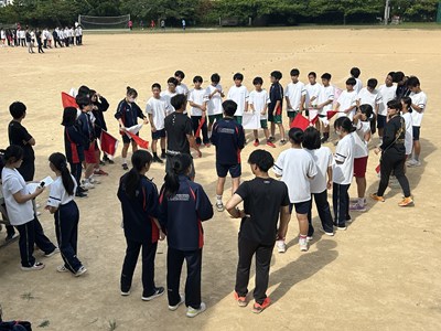 本日放課後、明日のKZNプロジェクトのリハーサルが行われました。中央委員会、美化委員会、体育委員会、放送委員会などが生徒会総務と協力して、11色綱引きの競技の流れや審判方法などの確認を行いました。委員会で円陣を組んでスタートするのも浦西中ならではですね!暑い中頑張ってくれた皆さん、ありがとう!明日の本番もよろしくお願いします!