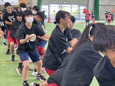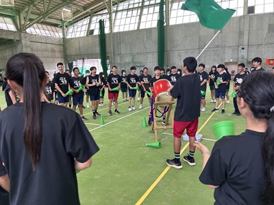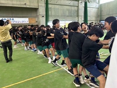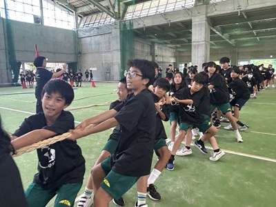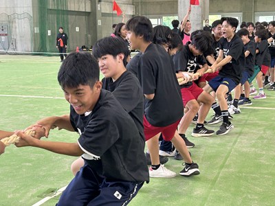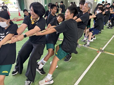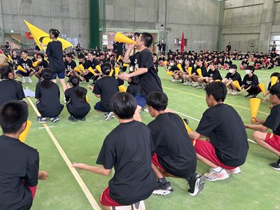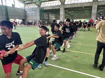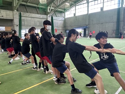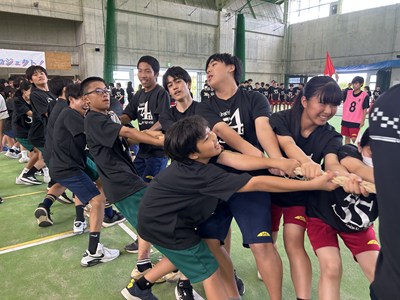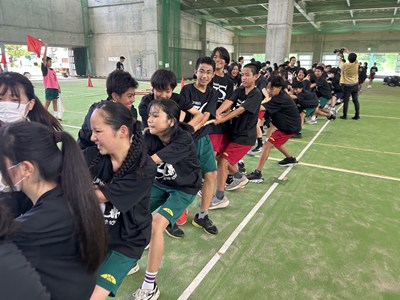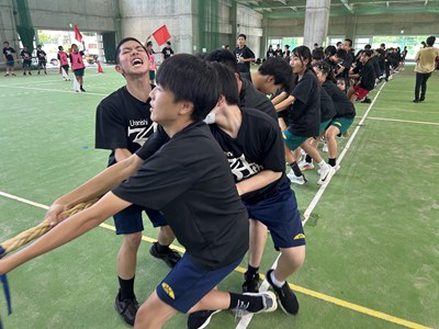 7月4日(金)浦添市多目的屋内運動場で令和7年度のKZN(きっと・ずっと・なかよし)プロジェクトが開催されました。団ごとに協力して絆円陣を披露し、11色綱引きでは白熱した戦いが繰り広げられました。みんなの笑顔がキラキラと輝く生徒主体の素晴らしい行事でした。1学期もあとわずかです。学年を越えて育んだ絆を大切に、これからも頑張っていきましょうね!