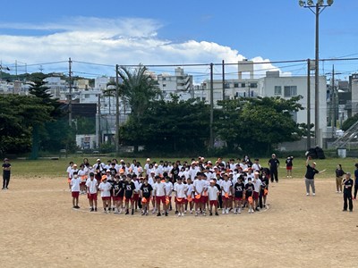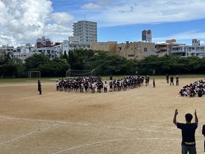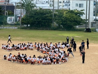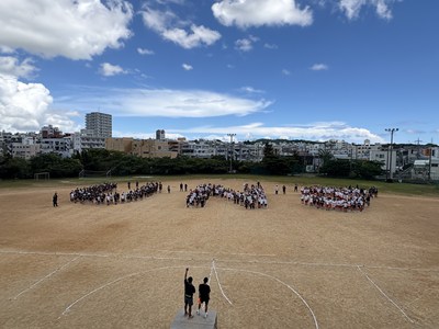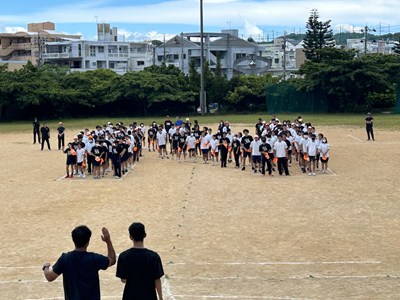 3年間毎年同じ位置を受け持つ、浦西中恒例の人文字の練習が行われました。1年生は初めての全体練習なので、自分の地位を確認しながら場所を覚えました。High祭本番ではドローンを飛ばします!みんなで手を振る練習までバッチリです!
