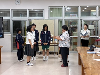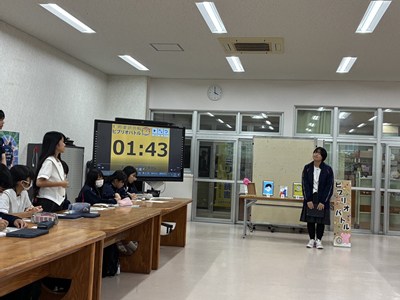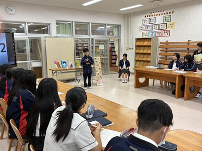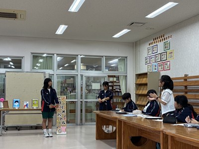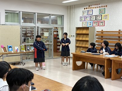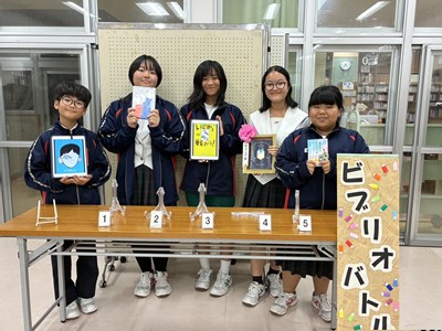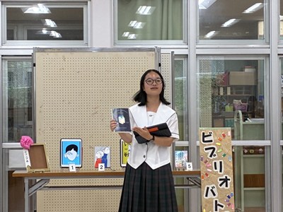 本校の図書委員会の読書月間の企画として、ビブリオバトルが開催されました。図書委員の皆さんで予選を行い、本選に出場したのは1年生2名、2年生2名、3年生1名の計5名です。ビブリオバトルは「知的書評合戦」とも呼ばれ、発表者がおすすめの本の魅力を3分でプレゼンし、会場からの質疑応答を2分間行います。沖縄国際大学の山口教授とゼミの大学生、市内の図書館司書の皆さんの前で堂々と発表し、プレゼン力を高く評価していただきました。読書の秋、ぜひ皆さんもおすすめの本を図書館で手に取ってみてくださいね。