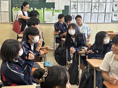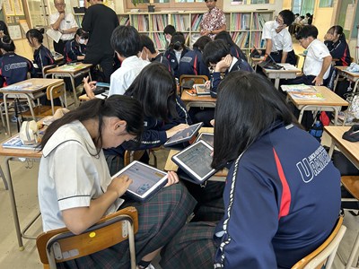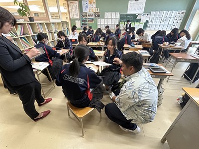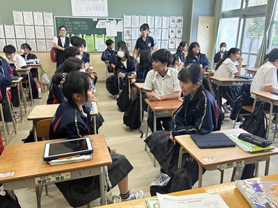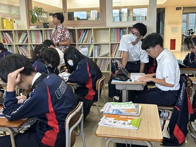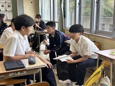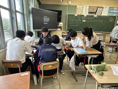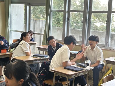 本日5校時、颯太先生による英語の研究授業が3年2組で行われました。自分の「推し」についての情報を紹介するために、関係代名詞thatを使って書く授業でした。ペア活動では積極的に話し合う様子があって、さすが3年生でした。どのように表現したらより魅力が伝えられるのか、試行錯誤は続きます。