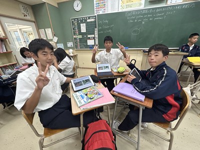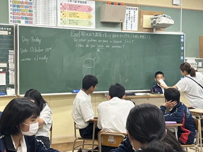英語の授業で「浦西中学校の解決すべき課題を見つけ自分たちにできることを考えよう!」をゴールに、グループで発表する準備をしていました。雑草が多くて草刈りが大変やダイアリーの活用について、中にはヤギが農園から降りてくることなど、取り上げたテーマは様々ですが、どのように解決するかを英文で考えていました。アクションにつなげられるよう頑張りましょう!