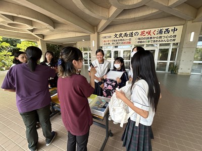 1年生が校外学習許可書を申請してフィールドワークにでかけていきました。行先は国際通り、みゆき小児科、ジュンク堂、アメリカンビレッジ、トイザらスなど様々でした。事前のアポどりから自分たちで頑張っています。校内組は調理室で実験をしたり、校長室にインタビューに来ています。みんな失敗を恐れずチャレンジしてね!