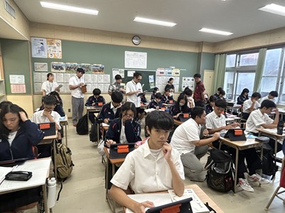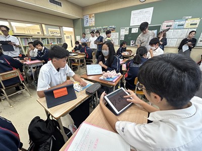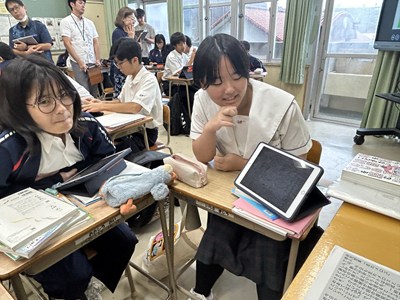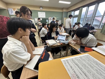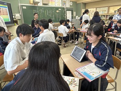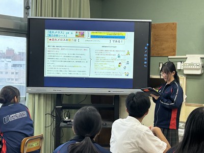 本日5校時、浦添市立教育研究所の研究協力員である大城裕樹先生の研究授業が2年2組で行われました。「走れメロス」の最後の授業で、作品の魅力について分析したことをグループで発表しました。一人一人が自分なりに根拠を持って価値づけしていました。お互いの発表から新たな視点に気づいて良さを認め合っている2組さんの姿はとても素敵でした。参観いただいた先生方からもお褒めの言葉をいただきました。