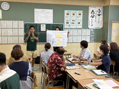 昨日の午後、浦西中、当山小の小中連携の公開授業研究会が行われました。1年4組の川合雅子先生、2年1組の瀬名波祥子先生が道徳の授業を、特別支援学級の大城研先生、下地昌之先生、山里昌平先生、瑞慶覧長大先生、仲里一志先生が合同の自立活動で授業を公開し、小中の先生方が一緒になって振り返りの授業研究会を実施しました。小学校の時にお世話になった先生方に授業を参観してもらえて、生徒の皆さんはとても嬉しそうでした。一小一中の良さを生かして、これからも学びの連続性を模索し続けます。