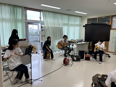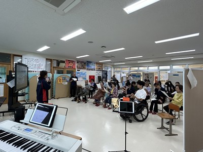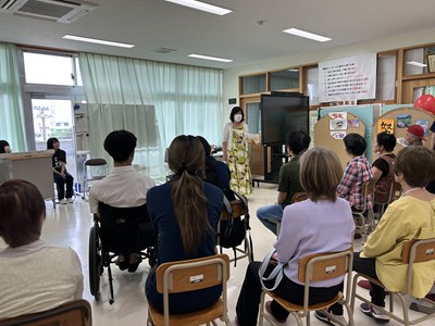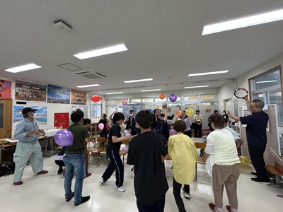 サンライズ楽級の皆さんがお世話になった地域の応援団の皆さんをお招きする交流会を企画しました。司会進行やあいさつ、バンド演奏、身体を動かすゲームなど、楽しいプログラムで参加した地域の皆様に大変喜んでいただきました。感謝の気持ちを様々な方法でおもてなしを通してお伝えすることができ素晴らしい会になりましたね!
