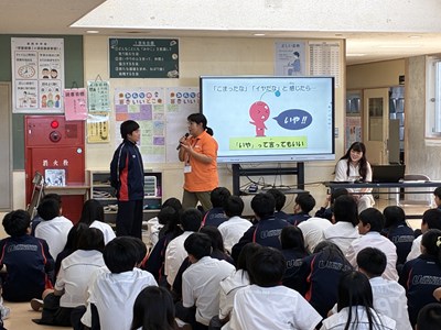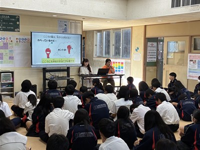 11月6日、1学年対象にデートDV予防講座が行われました。「自分らしさ」を大切にし、いじめ防止やDV加害者、被害者、傍観者にならないためにも人権意識を高めることを目的に毎年実施されています。おきなわCAPセンターの上野さん、福地さんが講師として講話してくださいました。ロールプレイを通して考えさせる場面もあって、1年生は真剣に取り組んでいました。