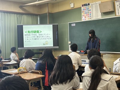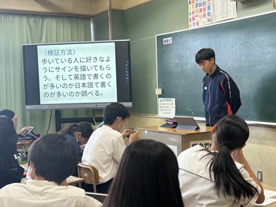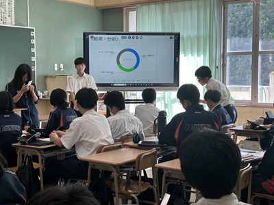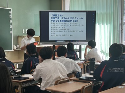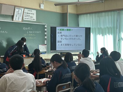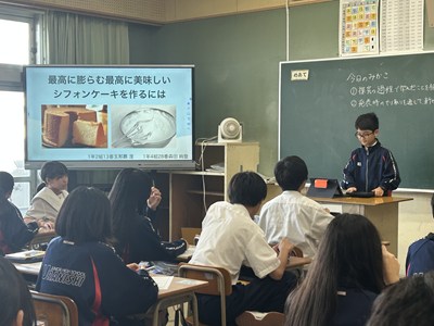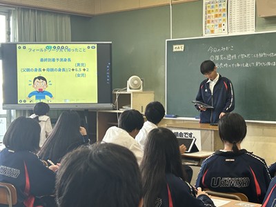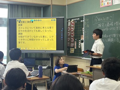 本日、1学年の自己探究中間報告会が各学級で実施されました。個人の興味関心のあるテーマをもとに、フィールドワークでインタビューしたことや、先行研究を調べるなどして、探究のプロセスに沿った報告が行われました。中学生になって初めての探究活動です。お互いの良さに気づいている意見もたくさん出ていました。これから経験を積んで試行錯誤を繰り返し、自信を持ってプレゼンできるようみんな頑張っていきましょうね!