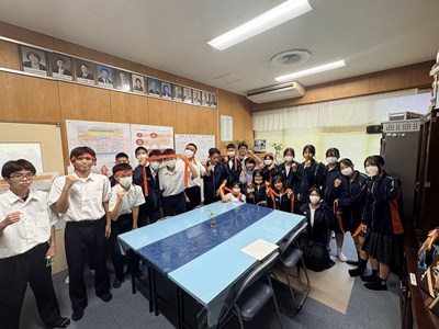 県大会に出場する駅伝メンバーに校長・教頭より学校カラーのオレンジ色で作った「至逞ハチマキ」を贈呈しました!浦西中の校訓「至逞」の姿で、全国を目指しぜひ頑張ってきてください!(15日9:00~「FMくめじま」で実況中継、16日14:30~「OCNテレビにらい」で録画放送)みんなで応援しましょう!