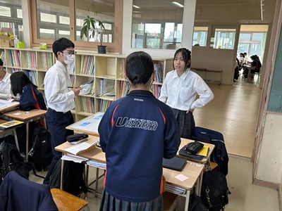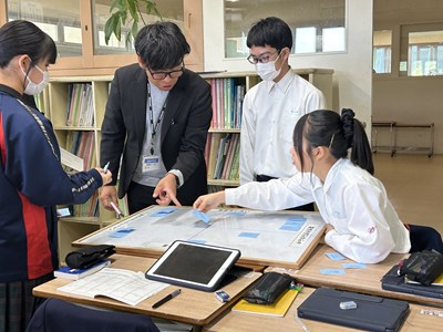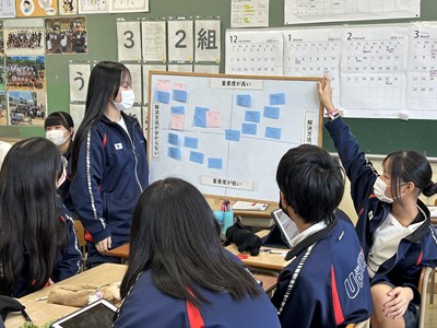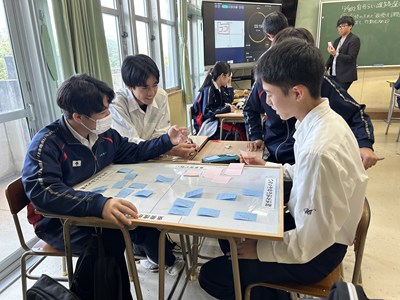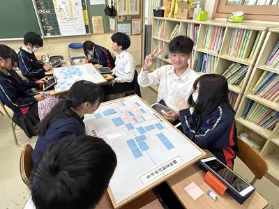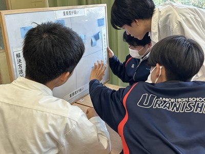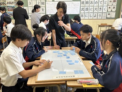 初任研の眞喜志一仁先生による学級活動(3)の研究授業が3年2組で行われました。入試を控えた3年生が自分自身の学習課題の解決に向けて、グループで協力して話し合いが行われました。マトリクス図と付箋紙、生成AIの活用という段階的なハイブリッド授業で、お互いの悩みに共感しながらとても仲良く素敵な話し合いの時間となりました。一人一人自分に合った解決方法を継続して実践につなげていきます!
