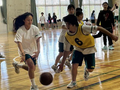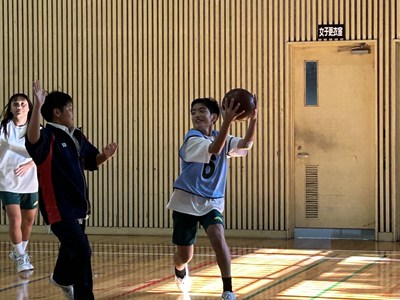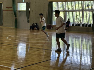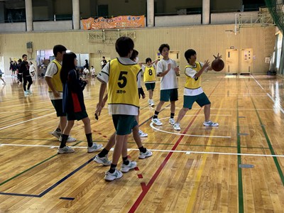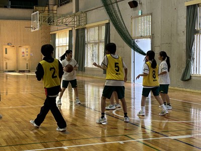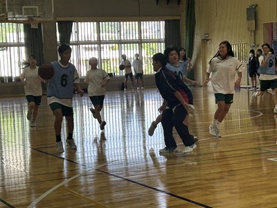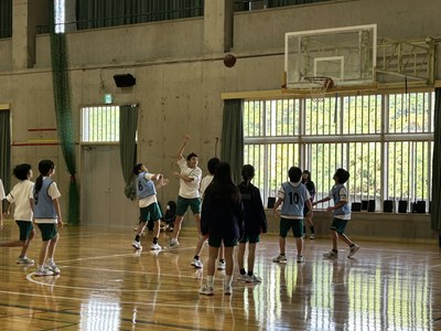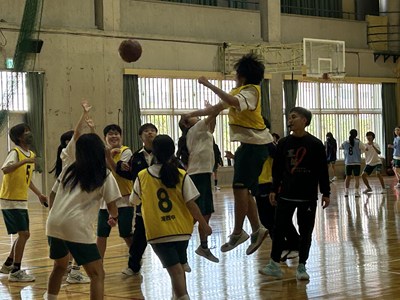 1年生のバスケットボールの授業を参観しました。短い時間でメンバーを入れ替えて、みんながゲームを通して味方にパスを送りシュートが決まるまで何度もチャレンジする様子が見えました。男女関係なく協力し合ってチームの課題を解決できたらいいですね!