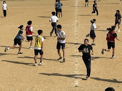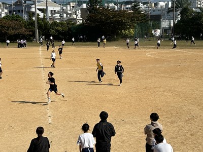 運動不足やストレスの解消になるように、3学年ではレクを計画実施しています。今日はグランド全体で「しっぽ鬼」で対決しました。ビブスを付けた鬼が放たれるとみんな一斉に走って逃げまわります。素直で無邪気な表情を見ているとこんな時間も大切だなと感じます。オン・オフの切り替えがしっかりとできる3年生です!