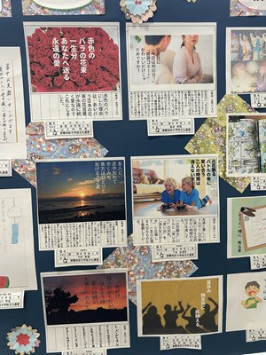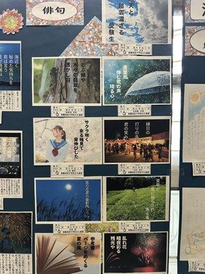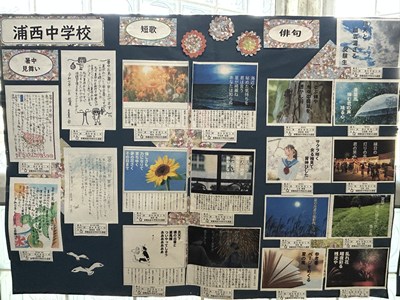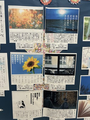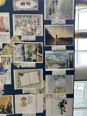 国語の授業で取り組んだ短歌や俳句、暑中見舞いなどの作品の中から、県中文祭に出品された生徒作品が校内に展示されています。一つ一つ作者の思いが込められていて、大変味わい深いです。生徒の皆さんもぜひ鑑賞してくださいね。