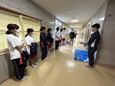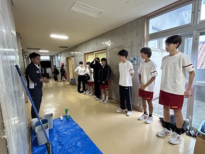 株式会社「日宅」の社員の皆さんと一緒に、毎週金曜日の早朝トイレ掃除のボランティア活動を行っています。参加したのは希望してくれた2年生40名の中からローテーションで活動しています。見えないところでの地道な活動を継続する力が皆さんにはついてきていると思います。とても素晴らしいです。