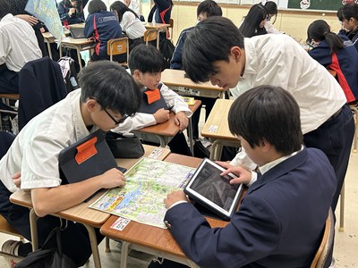 公開日 2025年12月19日 修学旅行ではクラス写真をすばやく並んで撮る必要があるため各学級で練習を行いました。どんなポーズにしようかとみんな楽しんでいます。長崎の自主研修の計画もグループごとに進んでいます。