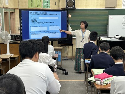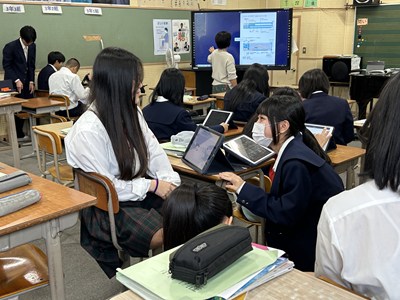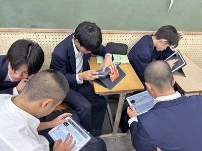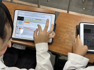 今日は3年4組で新垣亜紀先生の音楽の研究授業が行われました。各自テーマを設定して音やリズムの特徴を生かして作曲します。直感的に操作ができるアプリを活用し、楽器を選んで旋律を考えていました。打ち込んですぐ再生しながら鑑賞し修正できるので、みんなが夢中になって取り組んでいました。「~みたい」とイメージが広がる楽しい授業でした。