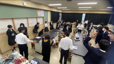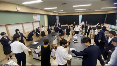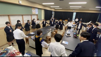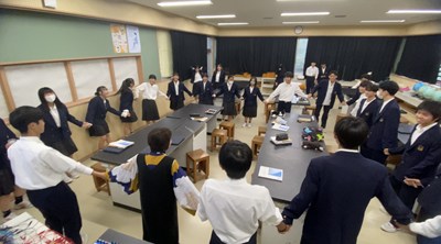 理科室から楽しそうな声が聞こえてきたのでのぞいてみました。コップの中のアルミホイルに静電気を集めてビリッと伝わる実験をしました。もちろん自由参加ですが「校長先生もやりましょう!」と誘われたので手をつないで輪になりました。緊張感が高まってみんなでドキドキ。「3・2・1」のかけ声とともに一瞬でビリッときて歓声があがりました。一緒に体験できてよかったです!