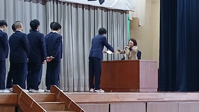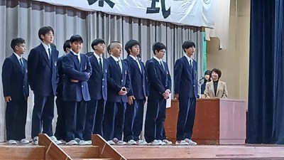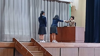 終業式の後、2学期最後の全体表彰を行いました。表彰を受けたのは以下の皆さんです。