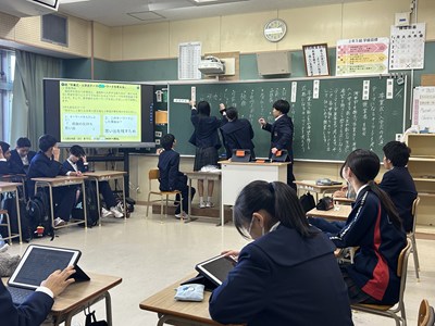 学級討議で卒業式と入学式にふさわしいテーマのキーワードを話し合いました。卒業生と新入生が希望を持てる式典になるよう、個人やグループの意見をもとに学級の案として提案できるよう、3学期の級長・副級長・書記の皆さんが中心となって学級会を引っ張っていました。素晴らしいテーマが決まるといいですね!