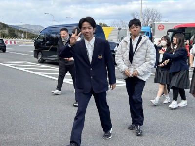 空港から長崎にバスで移動しています。気温は4度。気持ちの良い寒さです。