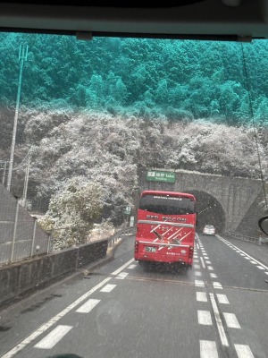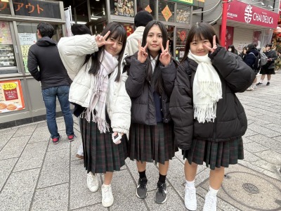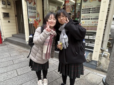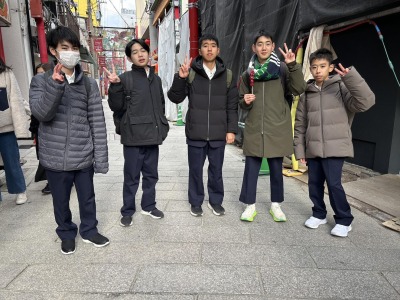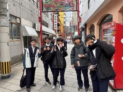 長崎自主研修の様子です。少し雪がちらつく様子もみられ、ホテルに向かうバスでは雪景色も見られました。バスで眠ってた生徒も飛び起きて沖縄では見られない景色を眺めてました。