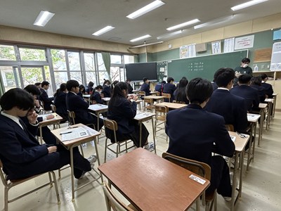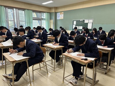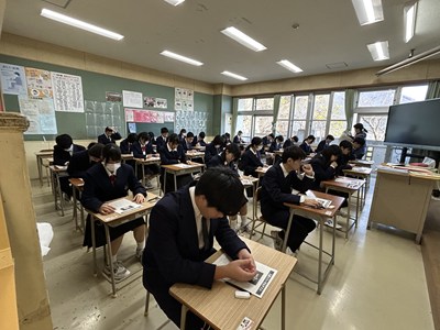公開日 2026年02月03日 3年生が高校入試を目指して模擬テストに挑戦しました。今日はネクタイやリボンを着用し、本番で使用する腕時計を準備してテストに臨みました。日頃の学習の成果が出るといいですね。みんな真剣な表情です。