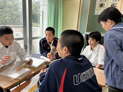 昨日、1年3組で吉元先生の特活の研究授業を行いました。「15歳の私へ」という題材で、キャリアパスポートを活用し自分自身の少し先の未来のなりたい姿を思い浮かべ、今の自分を見つめなおす授業でした。至逞ダイアリーで日々取り組んでいる実践もグループで話し合って共有していました。