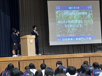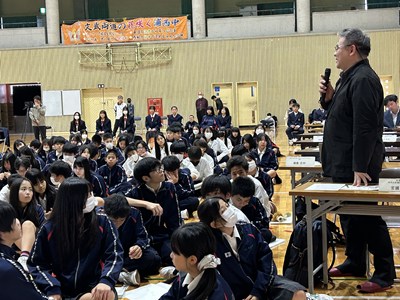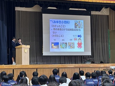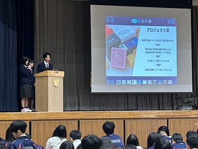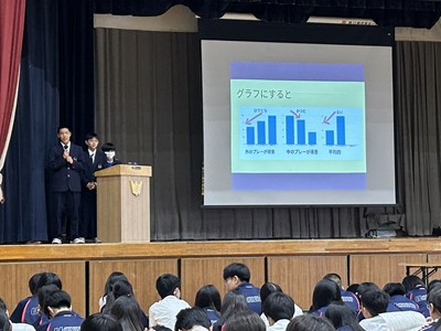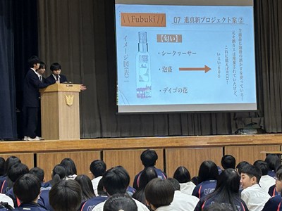今年度最後となる1年生2年生の探究学習全体成果報告会が行われました。ファイナリストに選ばれた1年生3チーム、2年生4チームが堂々とプレゼンを行いました。お招きした大学、企業、地域の講師の先生方、県内9つの中学校の先生方から、たくさんの専門的な批評や助言をいただき多くの学びにつながっています。浦西中の探究がこれからも深まっていくよう、また新たな課題を見いだし頑張っていきましょう!発表者の皆さん、すばらしいプレゼンでした。そして講師の皆様、ほんとうにありがとうございました。