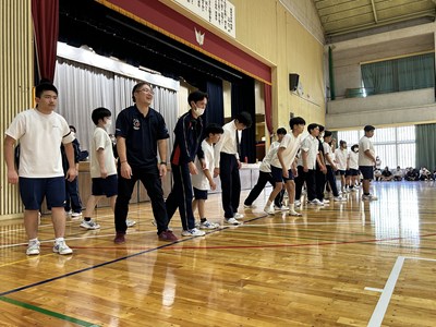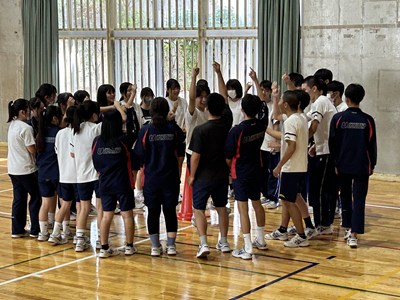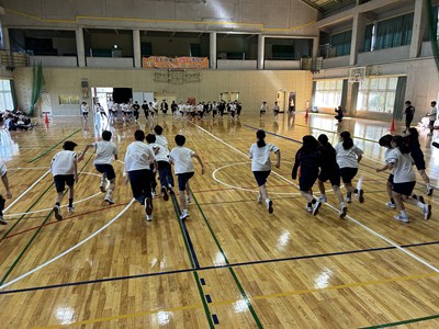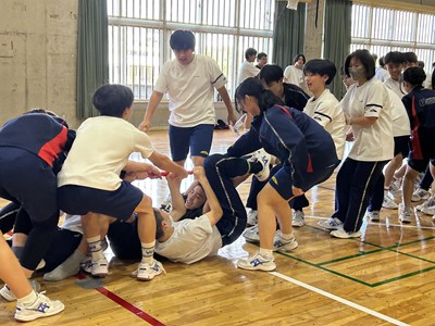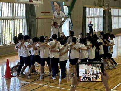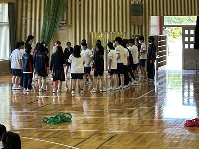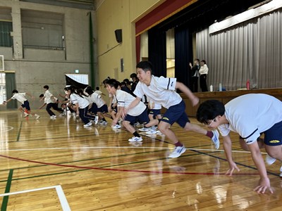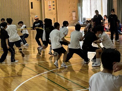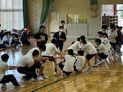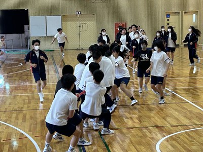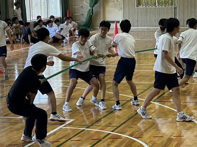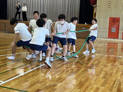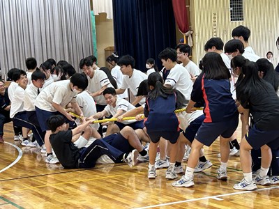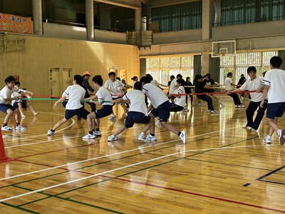 学級対抗5色綱引きで負けられない闘いに挑んだ3年生。引き分けたら担任ジャンケンでこれも意地でも負けられない闘いとなりました。結果は5組が優勝で1組が準優勝でした。この溢れるパワーを受検本番でもねばり強く発揮してくれることでしょう!気持ちのいい勝負を見せてくれてありがとう!