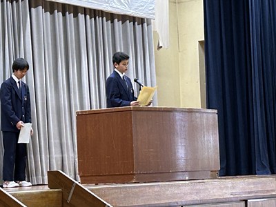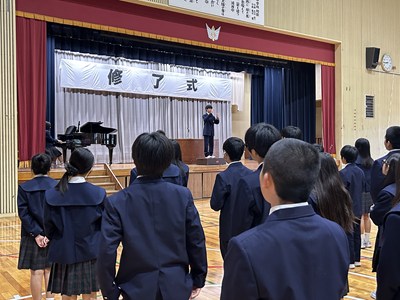 本日令和7年度の修了式を終え、1年生・2年生の課程を無事に修了しました。学年代表の生徒が1年間を振り返って立派にあいさつをしてくれました。心も体もこの1年間で大きく成長しましたね!浦西中学校のよき伝統を引き継ぎながら、進級してもみんなで協力してさらに素晴らしい最強で最幸の学校にしてください。