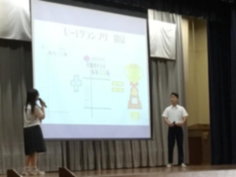 生徒会朝会で今年度の浦西中をもっともっと生徒の力で盛り上げてくれる団長や副団長の募集が呼びかけられました。