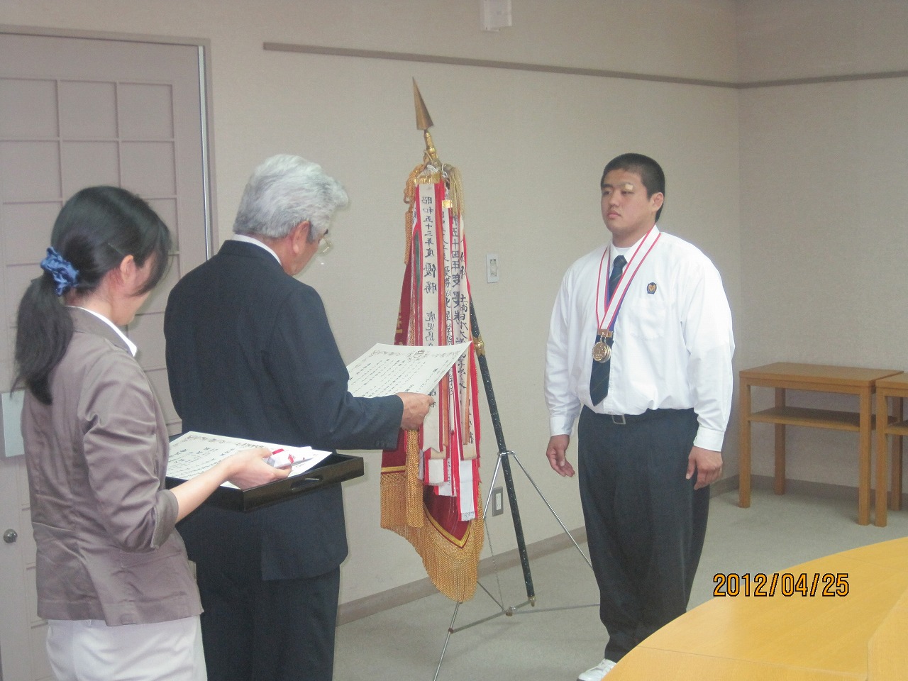 ↑ 輝くてだこ市民賞第12号受賞の浦添工業高校レスリング部のみなさん