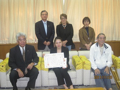 公開日 2011年11月25日 11月25日(金)午前11時、浦添市役所市長応接室におきまして、 輝くてだこ市民賞(第7号)の表彰式が行われました。 氏 名:国頭 藍子(くにがみ あいこ) 功 績:第28回日本身体障害者水泳選手権大会 女子50m平泳ぎ 優勝 女子50m自由形(浮き具付含む) 優勝 大会期日:平成23年11月12日(土) ~ 13日(日) お問い合わせ 企画部 秘書課郵便番号:901-2501住所:沖縄県浦添市安波茶一丁目1番1号本庁4階TEL:098-876-1255FAX:098-879-7224お知らせ:問い合わせメールはこちら