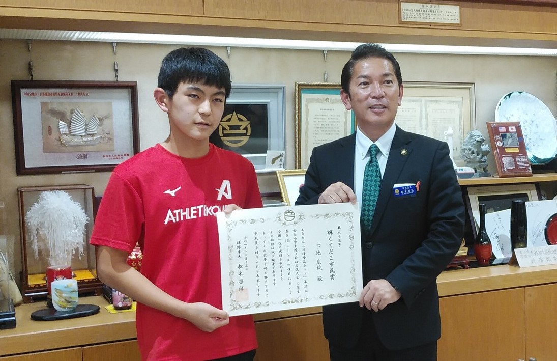功 績 :「日清食品カップ」第38回全国小学生陸上競技交流大会(5年生男子100メートル)において全国一位